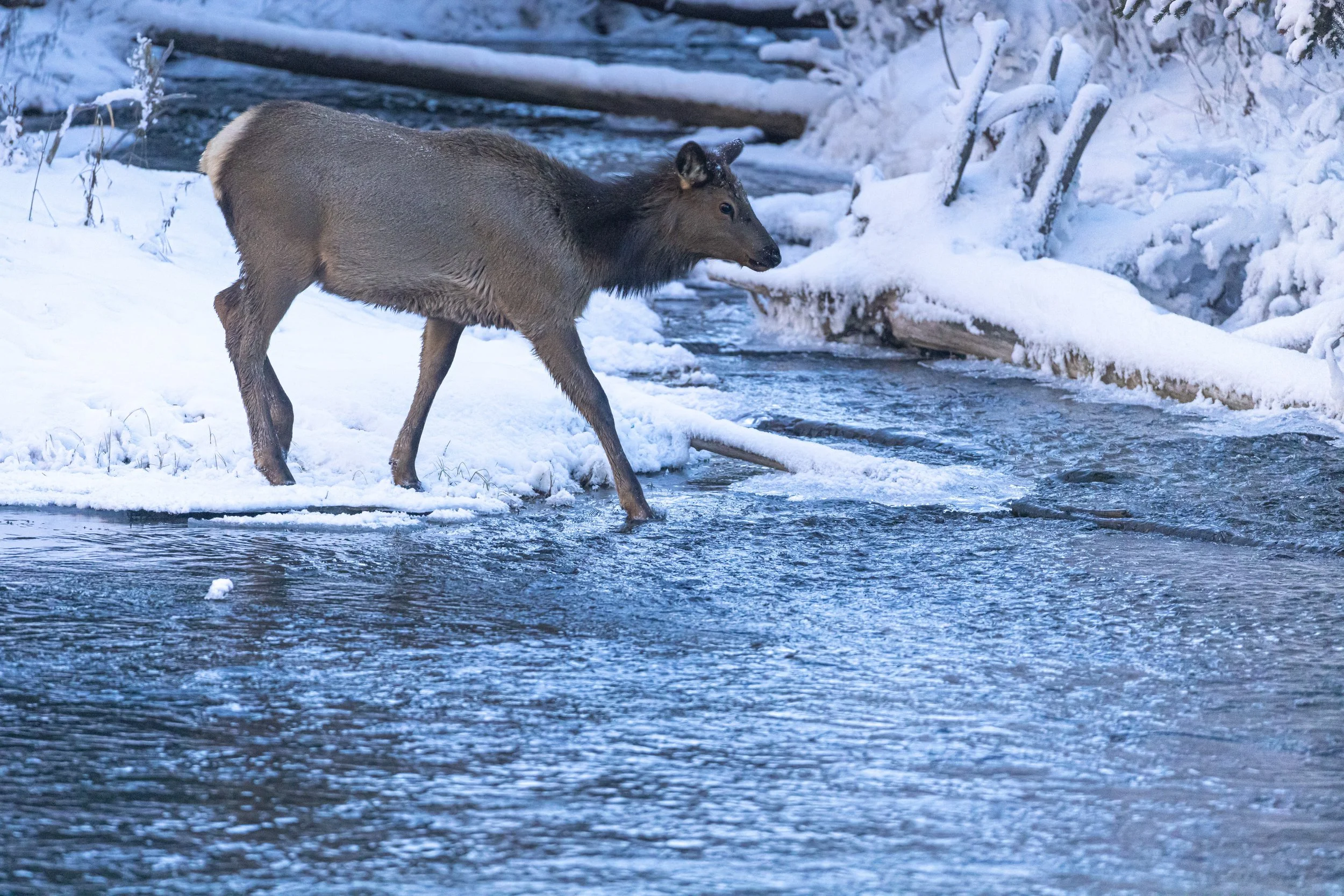Wapiti photographié au 500 f4. Image légèrement cropée. Yellowstone, décembre 2023.